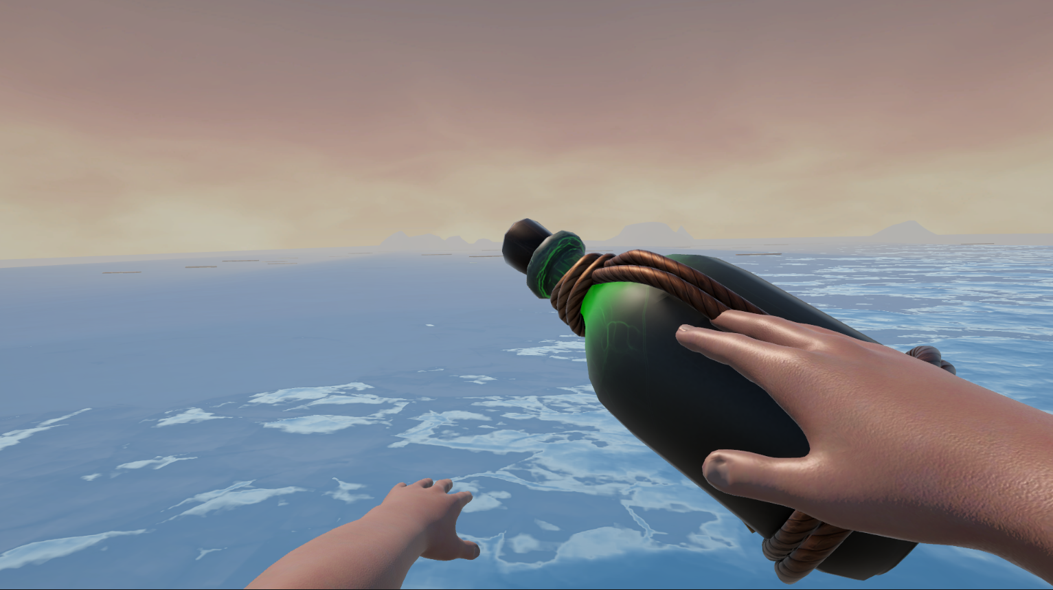 he writes his final words on a piece of cloth and jugs it into a bottle. You be the bottle!